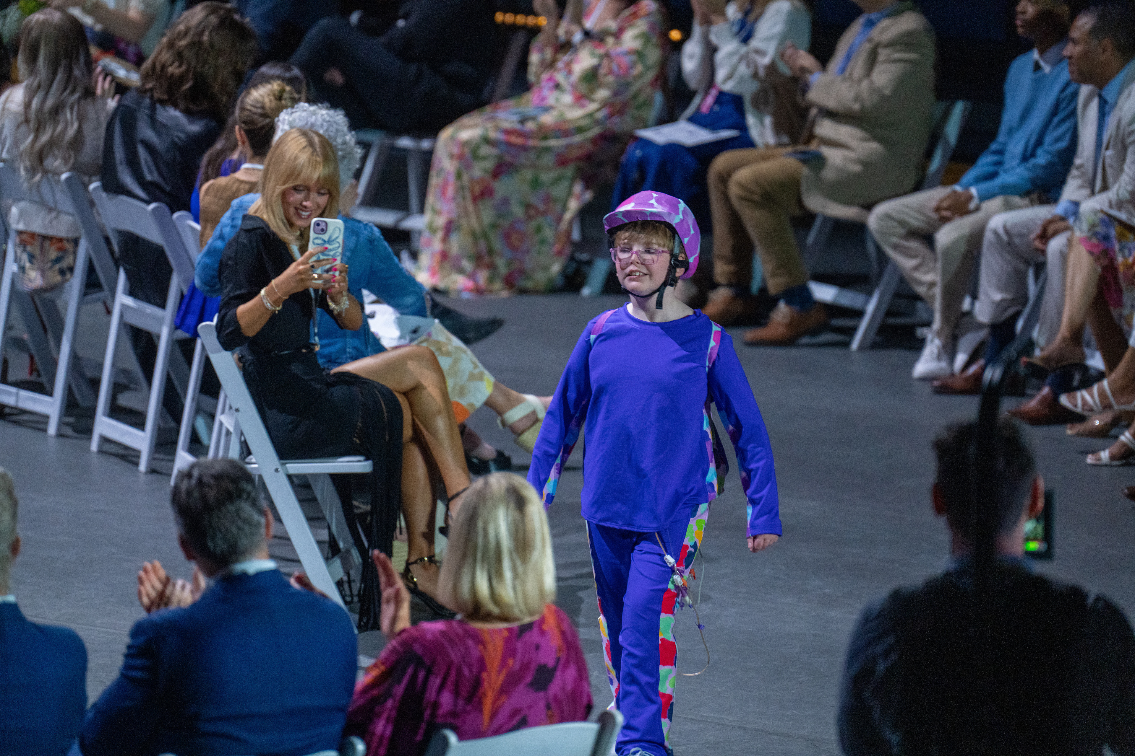 Though only a riding top, pants, and helmet cover were required, I opted to create a matching backpack that also showcases his artwork so he could match the rest of his outfit! Check out Ephraim's custom look walking the runway!